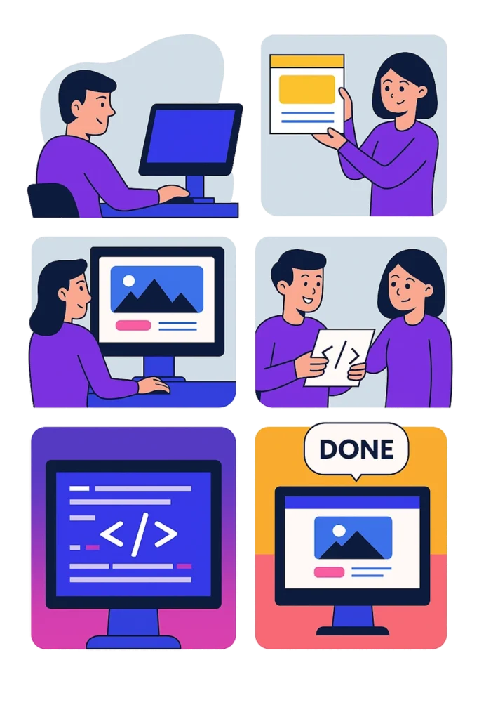 - После согласования тестового вэб-сайта и оплаты второй части, мы передаем код проекта или переносим его на ваш хостинг.
